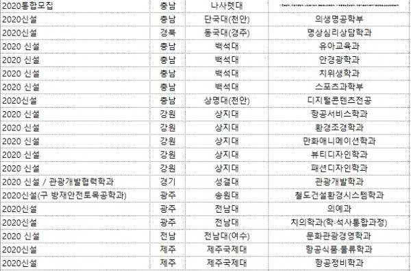 입시주요환경 중 모집단위 신설 또는 통페합 되는 학과들은 그해 비슷한 학과들의 입학결과 성적보다 높낮이의 예측이 다소 애매모호 합니다. 다시 말씀드리자면, 입학 결과 예측이 예상대로 흘러가지 않는 경향이 다소 있습니다. 그래서 성적대가 그 학교 지원하기 애매모호한 성적대의 학생이라면, 상향지원으로 한번 신설된 모집단위 학과를 지원하는 경우도 많이 있습니다. 아래 신설 모집단위 올려 드리오니, 정시 지원시 참고 하시길 바랍니다.